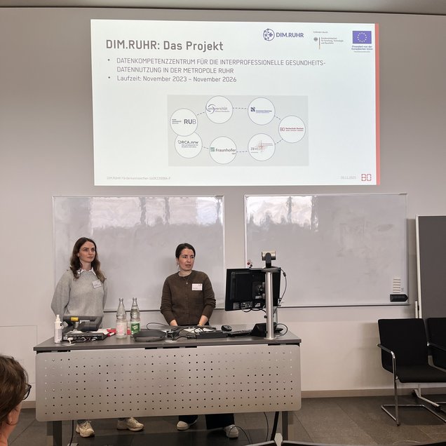 Im Rahmen der Session „Digitalisierung & Gesundheit“ war auch DIM.RUHR mit einem Vortrag von Sarah Milkov, Laura Geiger, Wolfgang Deiters und Michael Wessels vertreten. Im Fokus des Beitrages „Förderung der Datenkompetenz Studierender und Beschäftigter im Gesundheitswesen in der Metropole Ruhr – Das Projekt DIM.RUHR“ stand die Entwicklung zielgruppengerechter Open Educational Ressources (OER), welche im folgenden, letzten Projektjahr in der Lehre der projektbeteiligten Standorte zum Einsatz kommen und evaluiert werden sollen. Das vollständige Abstract zum Beitrag findet sich hier.