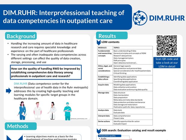 DIM.RUHR beteiligte sich mit einem Poster am „Markt der Möglichkeiten“ und wurde dort von Birte Lindstädt (ZB MED) und Peter Rasche (HSNR) vertreten. Dort fand reger Austausch sowohl mit den Besuchern der Konferenz, als auch unter den Poster-Ausstellenden über das Thema Forschungsdaten in verschiedenen Fachbereichen statt.