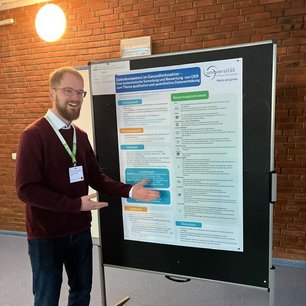 Auf dem diesjährigen Deutschen Kongress für Versorgungsforschung (DKVF) in Hamburg stellten Alex (Ruhr-Universität Bochum, Abteilung für Allgemeinmedizin) Christian (Universität Witten-Herdecke, Lehrstuhl für Versorgungsforschung), Jonathan (Hochschule Niederrhein, Fachbereich Gesundheitswesen) und Julia (Universität Witten-Herdecke, Lehrstuhl für Didaktik und Bildungsforschung) verschiedene Teilergebnisse des Projekts vor. In der Session „Kompetenzen der Zukunft: Gesundheitskompetenz, Datenkompetenz und Digitalkompetenz“ präsentierten die Teammitglieder Kurzvorträge zu den im Projekt entstehenden Scoping Reviews zu „Datenkompetenz in Gesundheitsversorgung und Gesundheitsforschung“ und „AI Literacy in der Pflege und der Hebammenwissenschaft“ sowie den didaktischen Leitfaden für Open Educational Resources. In der Postersession „Kompetenzen für die Versorgung“ wurde über die Qualität und Verfügbarkeit von Open Educational Resource zur Datenakquise im Gesundheitswesen gesprochen.