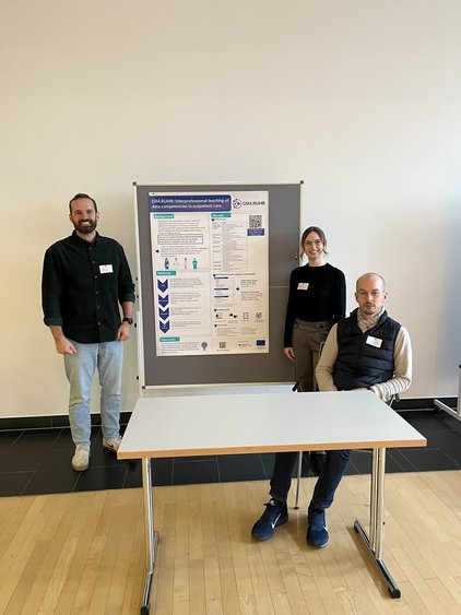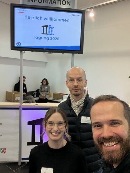 Auch in diesem Jahr war DIM.RUHR auf der ORCA.nrw-Tagung unseres Projektpartners ORCA.nrw unterwegs, die dieses Jahr wieder in Bochum stattfand. Organisiert wurde die Veranstaltung von ORCA.nrw, Stifterverband und gefördert vom Ministerium für Kultur und Wissenschaft des Landes Nordrhein-Westfalen. Wie jedes Jahr war das Event geprägt von interessanten Impulsen und anregendem Austausch rund um das Thema Hochschullehre. Über den Tag verteilt fanden mehrere parallele Sessions statt: In den Future Skills Slots sprachen Vertreter:innen des Stifterverbands über zukunftsorientierte Kompetenzen, im Community Call konnten Forschende und Lehrende aus der Community berichten und in den Workshops wurden die Besucher der Veranstaltung selbst aktiv. Jonathan, Alex und Anne präsentierten das Projekt DIM.RUHR auf dem “Markt der Möglichkeiten” während der Mittagspause.
